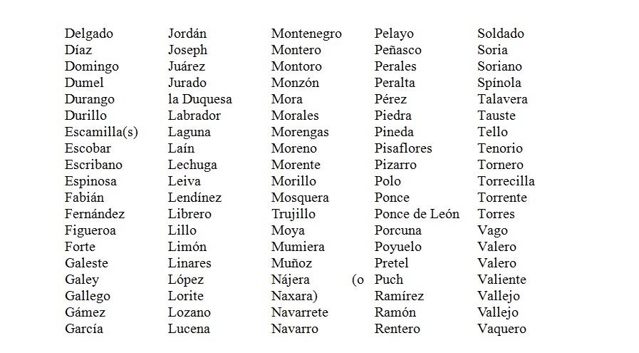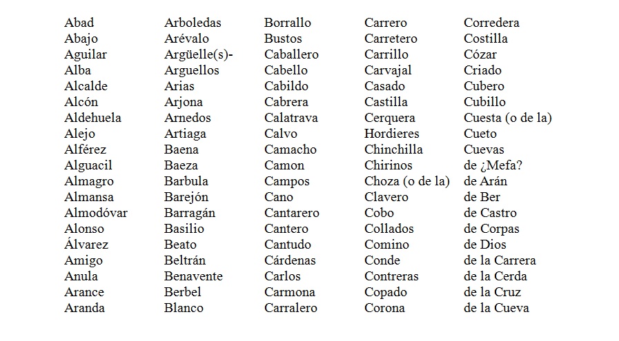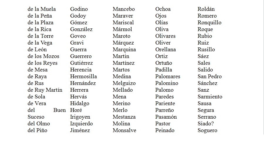 Paso a enumerar, con la grafía normativa actual, los 317 apellidos que nuestros antepasados tenían en aquel Bailén de 1764: