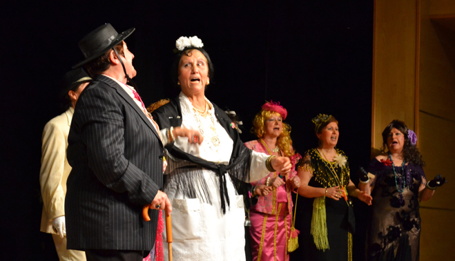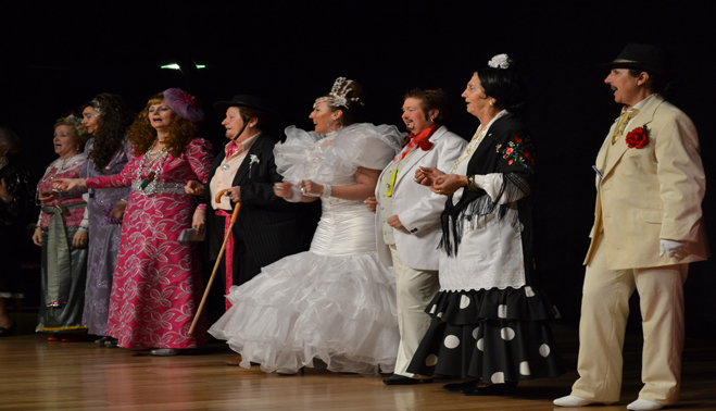 Veteranos en estas lides y encabezados por la directora del Centro, Trinidad Simón, se enfrentaban a un auditorio lleno hasta la bandera y entregado a la chirigota «Boda gitana», que puso sobre el escenario desde los novios hasta el último invitado, pasando incluso por San Pedro. Una tarea más, dentro de las organizadas por el centro de participación activa de mayores, con letras propias, un tono «atrevido», vestuario y puesta en escena para hacer su contribución al Carnaval bailenense 2014.