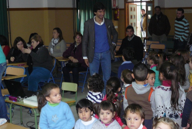 La Escuela de Educación Infantil Historiador Jesús de Haro celebró en el día de ayer sus segundas jornadas de puertas abiertas. En esta ocasión, la temática de las fue la tauromaquia, y para ello contaron la con la presencia del torero linarense Francisco Díaz Flores “Curro Díaz”. Los 36 alumnos del centro educativo, con edades comprendidas entre 3 y 5 años, pudieron conocer de primera mano al diestro, que durante más de media hora atendió a las preguntas de los pequeños, así como las de sus padres. Los asistentes pudieron conocer los inicios del diestro, sus manías o sus mejores trofeos, entre otras anécdotas que Curro Díaz desveló. Asimismo, pudo realizar una demostración de los principales pases al toro encima del escenario.