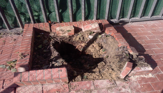 - Grieta abierta por las raíces de los árboles tras el temporal