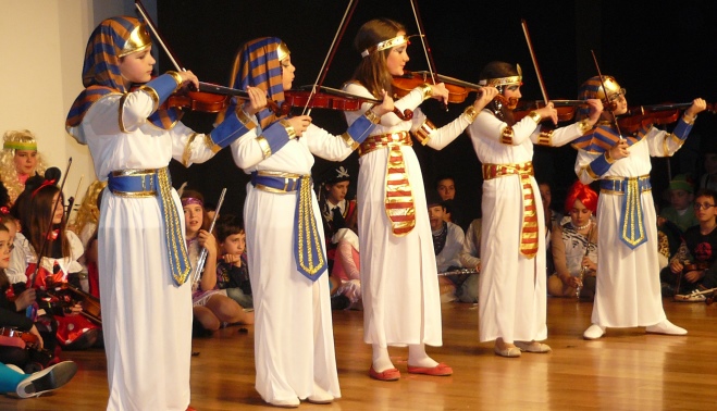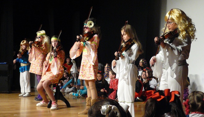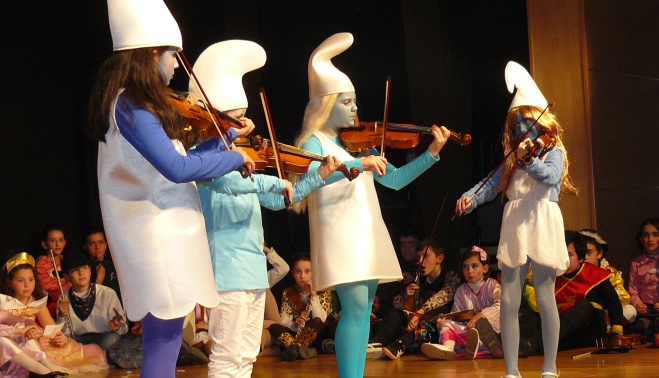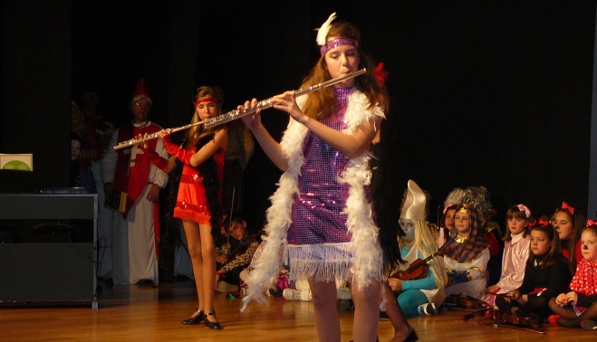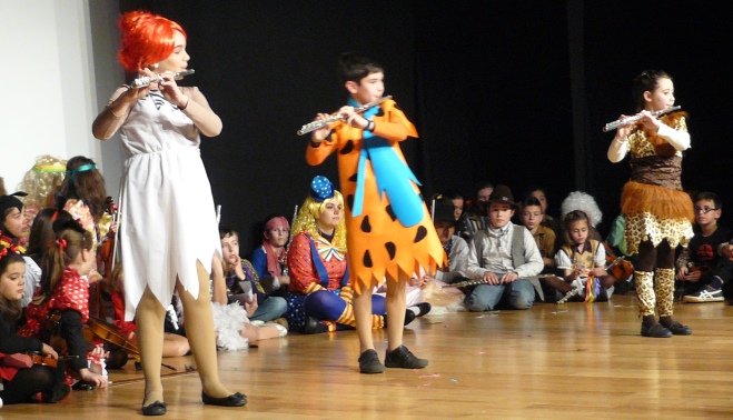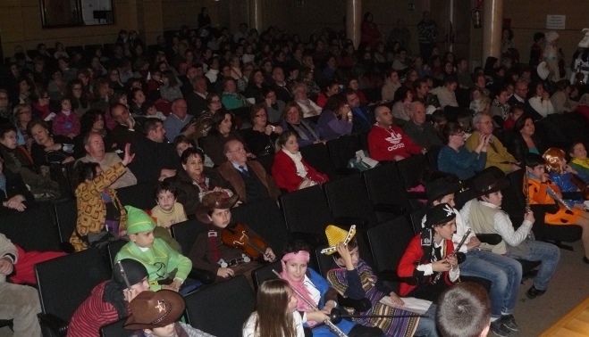 Ante un salón de actos abarrotado, los alumnos del Conservatorio Elemental de Música “Reina Sofía” celebraron su tradicional Concierto de Carnaval. El casi centenar de niños y niñas que cursan estudios de viola, violín, piano, flauta y guitarra han interpretado obras de Disney, Mozart, o temas tan conocidos como el de los Pifufos, los Picapiedras o ABBA, entre otros.