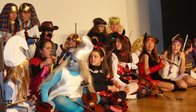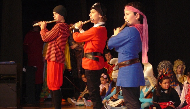 Todos los alumnos y profesores, que iban disfrazados, han conseguido transmitir lo aprendido en lo que va de curso, transformándose en los personajes de las canciones e incluso en los compositores que interpretaban cada uno de ellos. Tanto los jóvenes músicos como el animado presentador del acto, consiguieron hacer partícipe al público asistente del concierto.