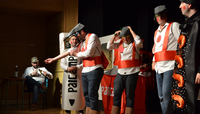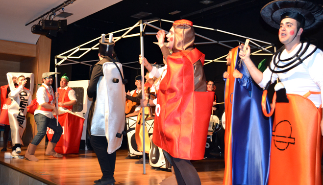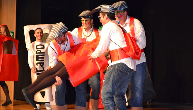 Y es que bajo el nombre “Yo me voy el jueves, ¿y tú?” se escondía una representación casi teatral de esos bailenenses que acampan en Zocueca varios días antes de la romería. Tradición y costumbrismo que los chicos de los Informales han conseguido plasmar de manera fiel y real, y que se veía en cada reacción del público. Bien metidos en el tipo, cada uno de ellos representa todo lo que no falta en las “fiestas” de la aldea vecina: una bombona de butano, un motor, botellines, el abridor, una tienda de campaña, una plancha con gambas, el botellero, altavoces con patas de jamón, una bota de vino, hasta un chaparro, los romeros e incluso el típico «gorrón». La romería de Zocueca llevada al escenario la Casa de la Cultura.