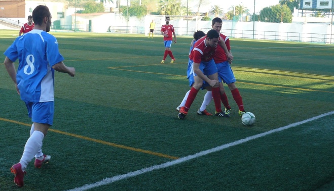 - Padilla y Carlos pugnan por un balón.